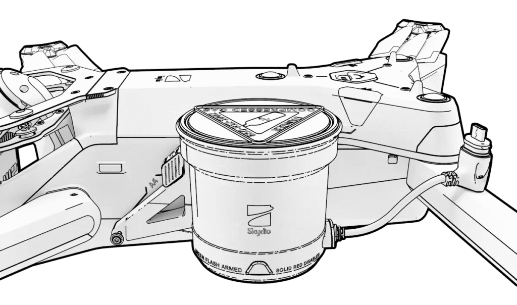 Skydio Parachute is a purpose-built safety attachment engineered to support safe, compliant operations over people and moving vehicles. It adds an additional, independent layer of protection that complements our autonomous flight, obstacle avoidance, and system health monitoring.