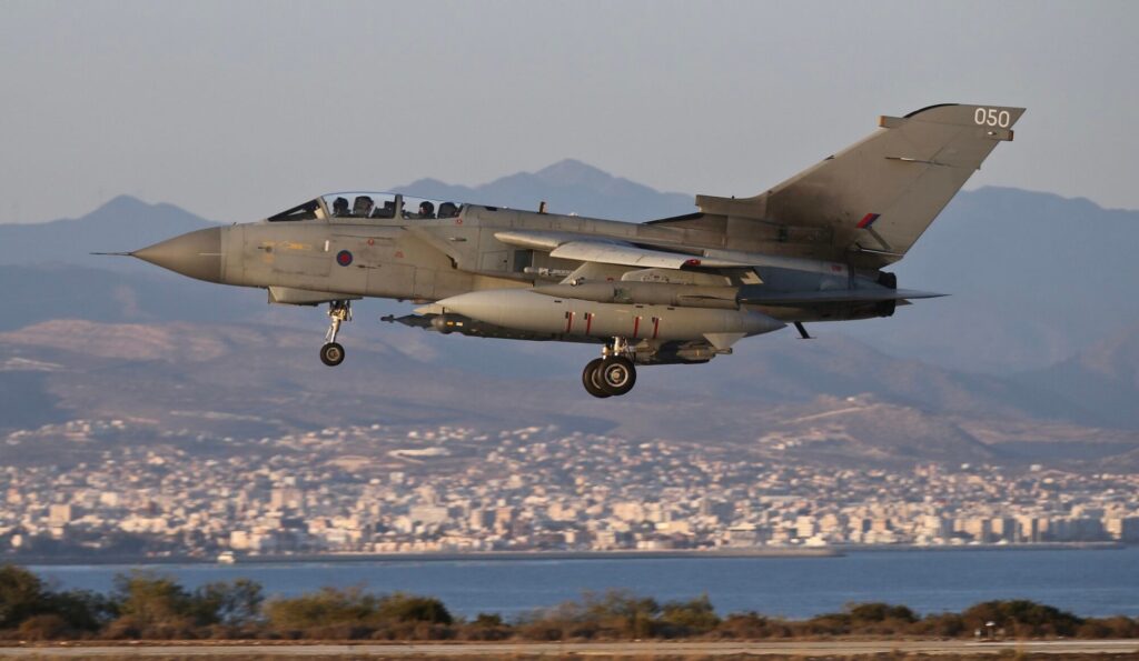 An RAF Tornado GR4 makes its return to RAF Akrotiri following a mission conducted during Operation Shader. Credit: Cpl Neil Bryden RAF/MOD, OGL v1.0, via Wikimedia Commons